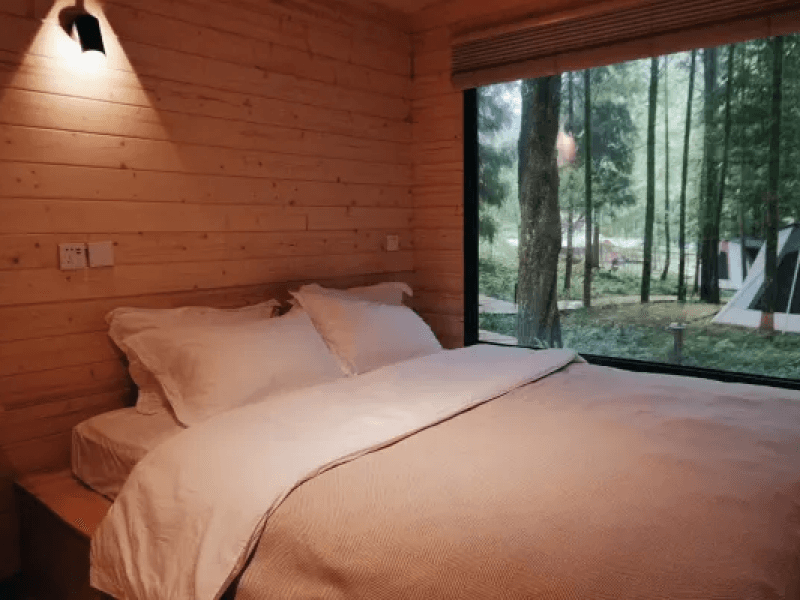 B&B is located in the “natural oxygen bar” Chongzhou Jiguan Mountain Village, negative oxygen ion content of 18,000-23,000 / cubic meter. Camp environment is small and beautiful, there are independent forest cabins, exquisite camping tents (American whiteduck white duck tent). The cabins and tents are all branded mattress bedding, aca kappa imported toiletries, Panasonic intelligent toilet. In the natural and wild environment, you can also have an extraordinary comfortable experience.